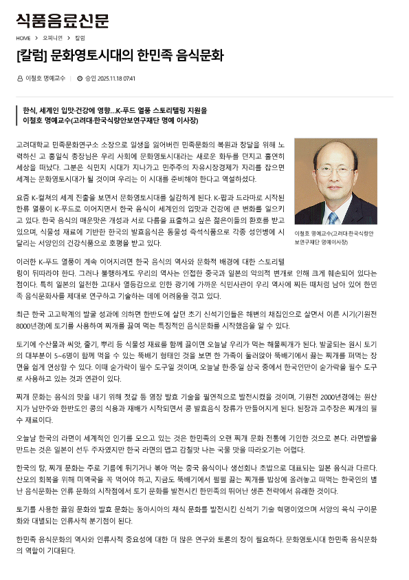 ÀÌöȣ ¸í¿¹±³¼ö(°í·Á´ë¡¤Çѱ¹½Ä·®¾Èº¸¿¬±¸Àç´Ü ¸í¿¹ ÀÌ»çÀå)