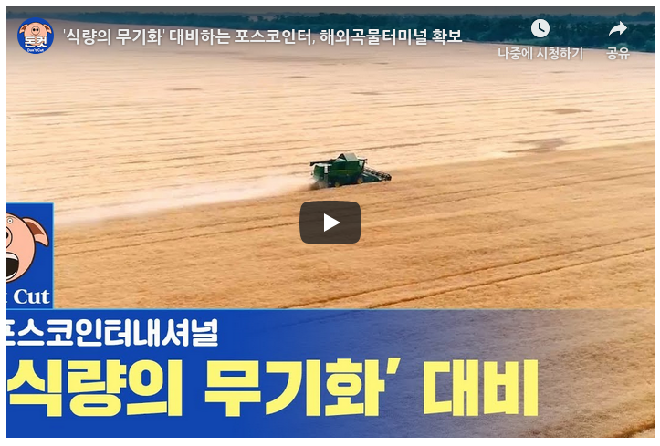 Æ÷½ºÄÚÀÎÅͳ»¼Å³Î ±è¿µ»ó »çÀåÀº "Æ÷½ºÄÚÀÎÅͳ»¼Å³ÎÀº Çѱ¹ ÃÖ´ëÀÇ ½Ä·®ÀÚ¿ø ±â¾÷À» ¸ñÇ¥·Î ½Ä·®»ç¾÷ ¹ë·ùüÀÎÀ» È®ÀåÇϰí ÀÖ°í ±× Á߽ɿ¡ ¿ìÅ©¶óÀ̳ª °î¹° ¼öÃâ Å͹̳ÎÀÌ ÀÖ´Ù"¸ç "¼¼°èÀûÀÎ °î¹°½ÃÀåÀÎ ¿ìÅ©¶óÀ̳ª¿ÍÀÇ »ç¾÷ Çù·ÂÀº ´ëÇѹα¹ ½Ä·®¾Èº¸ ±¸Ãà¿¡ µµ¿òÀÌ µÉ °Í"À̶ó°í ¹àÇû´Ù.